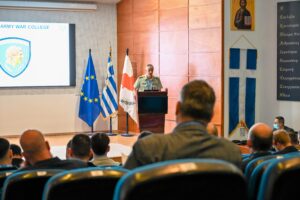 The Hellenic Army War College (HAWC) organized, under the auspices of the European Security and Defence College (ESDC) and in collaboration with the Cyprus Security and Defence Academy (CSDA), a training activity titled: “Modern Leadership in the Context of the Law of Armed Conflicts and Open Source Intelligence.” The activity took place from 13 to 17 of October 2025 at the college’s training facilities, in the context of which subjects were presented, focusing on the international law of armed conflicts, the influence of open-source intelligence on the decision-making process, and the characteristics and skills of the modern leader. The closing ceremony of the training program me was attended by the General Consul of the Republic of Cyprus in Thessaloniki, Mr. Konstantinos Polykarpou and the representative of CSDA, Captain Andreas Patsalides. A total of 34 participants undertook the course, including military and law enforcement officers, scholars and diplomats from 8 EU countries, namely: Belgium, the Czech Republic, Cyprus, Greece, Lithuania, Malta, the Netherlands and Poland. Lectures were delivered by subject matter experts from European organizations, Greek and Cypriot universities and specialist military personnel with knowledge on these matters.